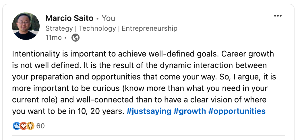 First, a story. In 2004, as I pursued my first CTO role, I sent a cold email to Avie Tevanian (at the time, CTO at Apple) and he agreed to meet for breakfast for a career talk that had a profound impact on my thinking and career. Most “successful” people want to help. Just ask.